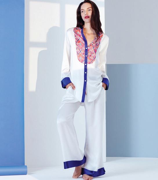 The collection is a modern take on classic shapes in fearless, unsleepy colourways and exclusive, bold prints in beautiful 100% silk charmeuse. Hesper Fox’s easy-luxe take on downtime dressing gives lazy Sundays (and workat-home Mondays) an elegant upgrade.