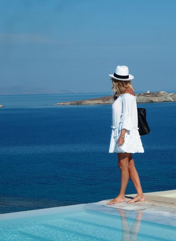 but could not possibly say who....the squashy sofas and cool corian furniture are the perfect place from which to watch the sunset over a cocktail or two and look out for that celebrity. I have one top tip high heels and cobbles were never destined to get on well, so make sure you have some flat party shoes if you are venturing into town. Mykonos can be as layed back or dressy as you wish to be, but remember to take those sunnies as far as sunglasses are concerned, there’s no such thing as ‘too big’ in Mykonos.