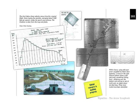 Within hours, using side-scan sonar (supplied by Ocean Scan Systems), a trace on the Lake Ontario bottom shows a telltale track: something hitting hard , slithering over the bottom and coming to rest at trail’s end, an object about ten feet long. Three more tracks have been identified.