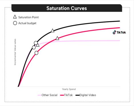 3. SaturationandEfficiency Curves: The model provided a saturationcurve to determine when additional spend on TikTok would reach diminishing returns, ensuring media budget optimization.