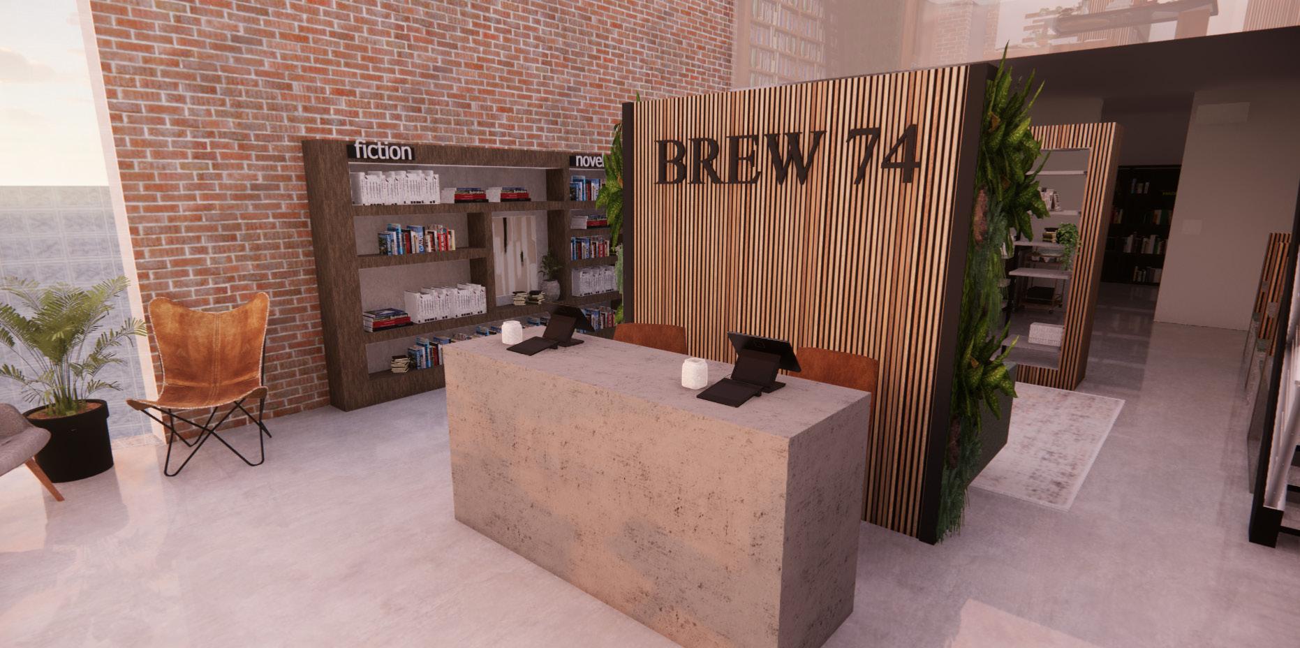 Brew 74 was brought to life to create a warm and inviting place for students, residetns, and coffee lovers to come socialize, get work done or relax. Through a variety of textiles and warm lighting, this retail location offers a wam and cozy environement that is multifunctional for any customers needs.