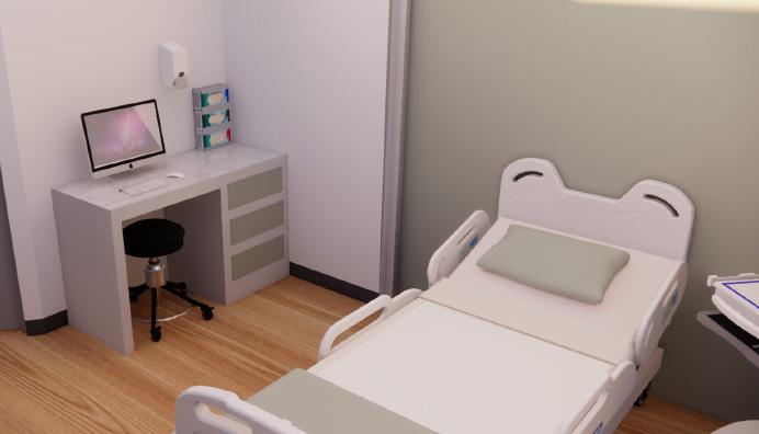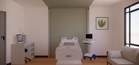 To provide a clean and stable environment for a patient to feel as much at home as possible. With calm and monochromatic colors to represent stabilty and peace. Also including hints of biophilic elements to bring the outside in. While recieveing the best care it is important to be able to heal in an atmosphere that is peaceful.