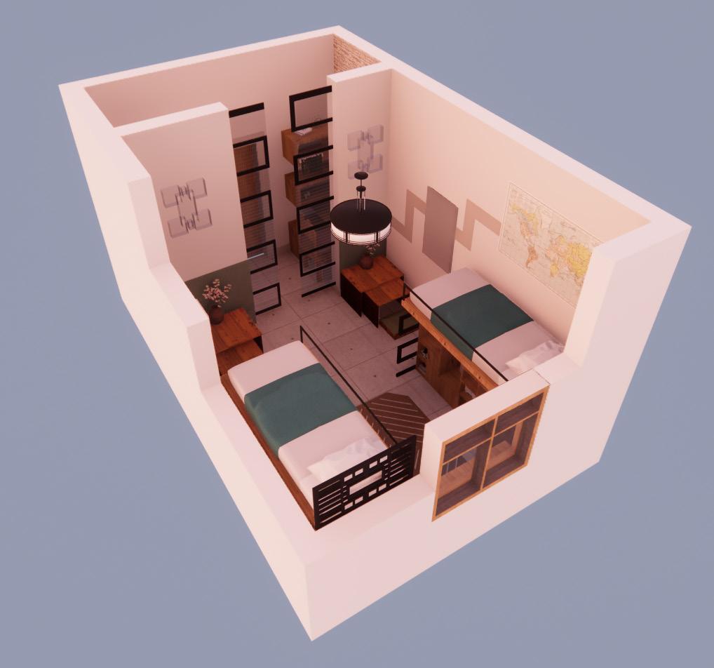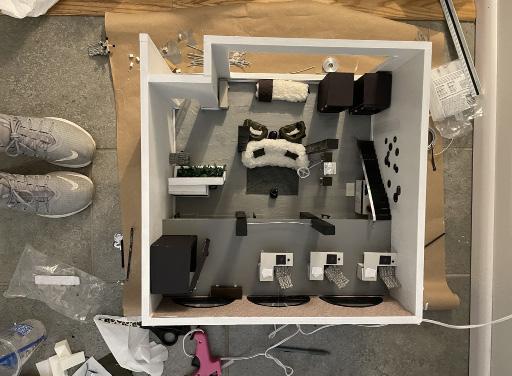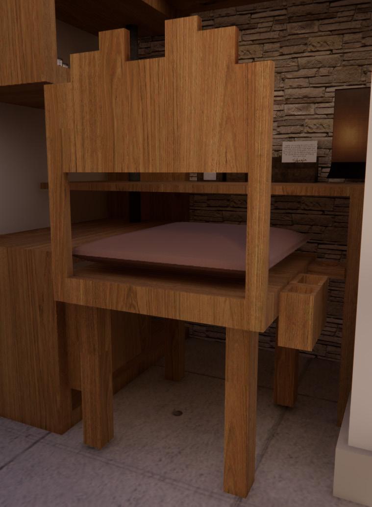 Individual Work: We each did individual schematics, I completed the desk chairs, lounge chairs, pillows and decor