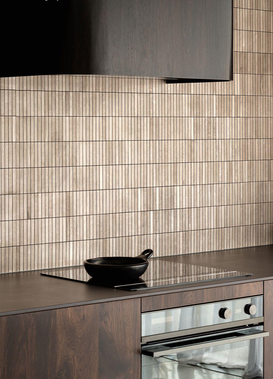 HOME is an Italian wall tile collection that introduces the kitkat or finger mosaic concept in a brick tile format. Each tile contains six linear strips that create the finger mosaic texture. Stocked in seven colourways, each with a range of shade and colour intensities that vary from tile to tile. A lovely reeded texture for beautiful feature walls.