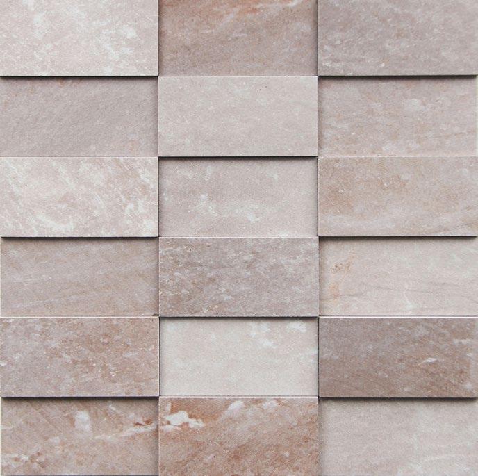 Suitable for interior and exterior walls, there are four colourways, each with nine unique faces that are randomly supplied. A fabulous tactile collection with an interlocking format that facilitates an extremely natural effect.