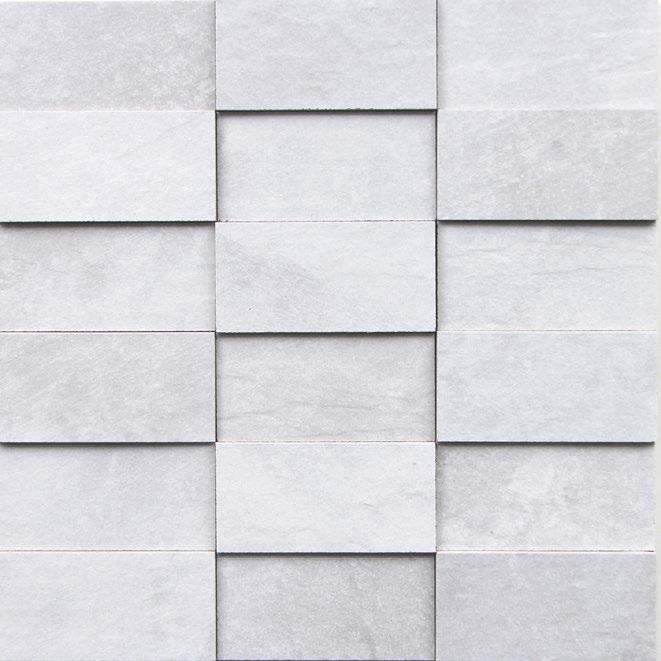 Pictured: Himalaya Light Grey with 3D Mosaic & 4D Chevron White