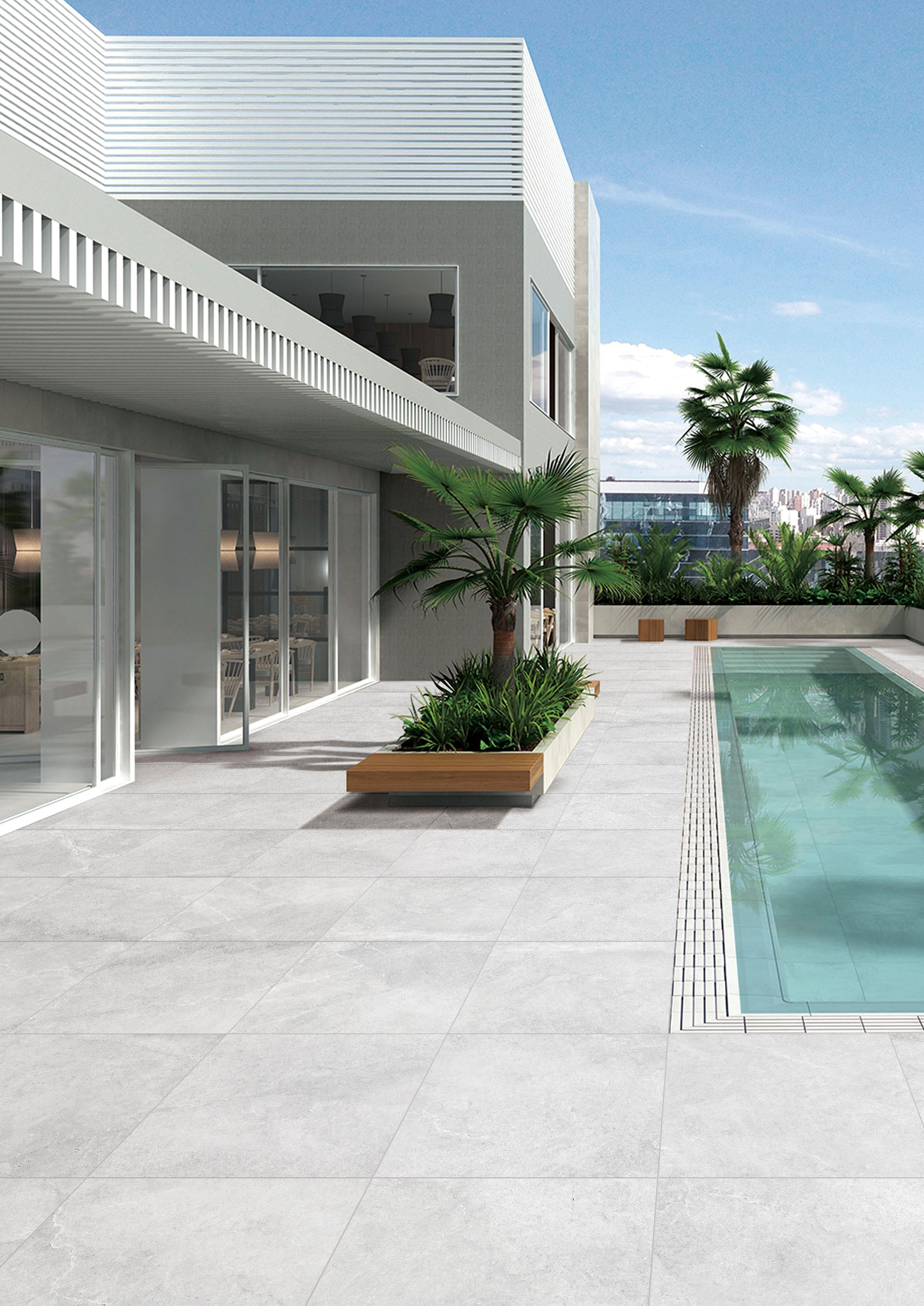 Bring the beauty of interior tiles to the outdoors with porcelain tiles and 2cm porcelain pavers designed specifically for exterior use.
