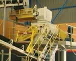 систем формования по специальным проектам клиентов для экструдерных линий как для кирпича, так и, как в данном случае, для заготовок черепицы. Опыт последних двадцати лет работы подсказал использовать системы с двумя зеркальными выходами с последующим поворотом пласта на 90° на рольганге, после чего пласт отправляется на