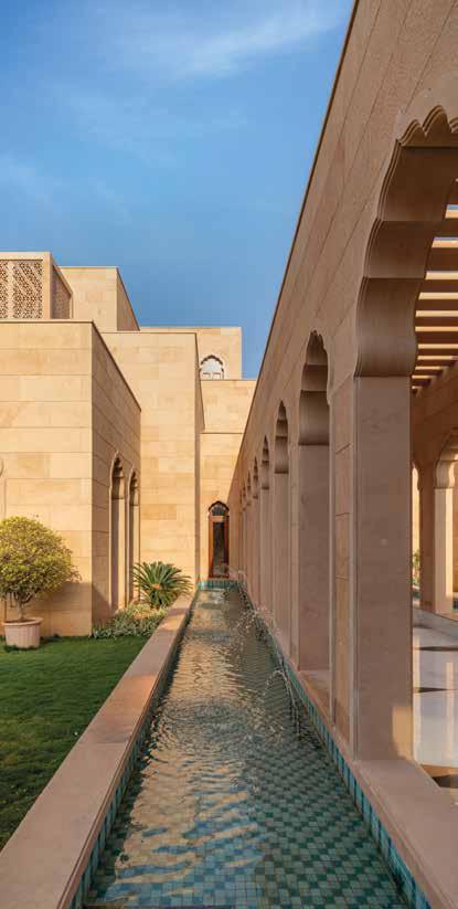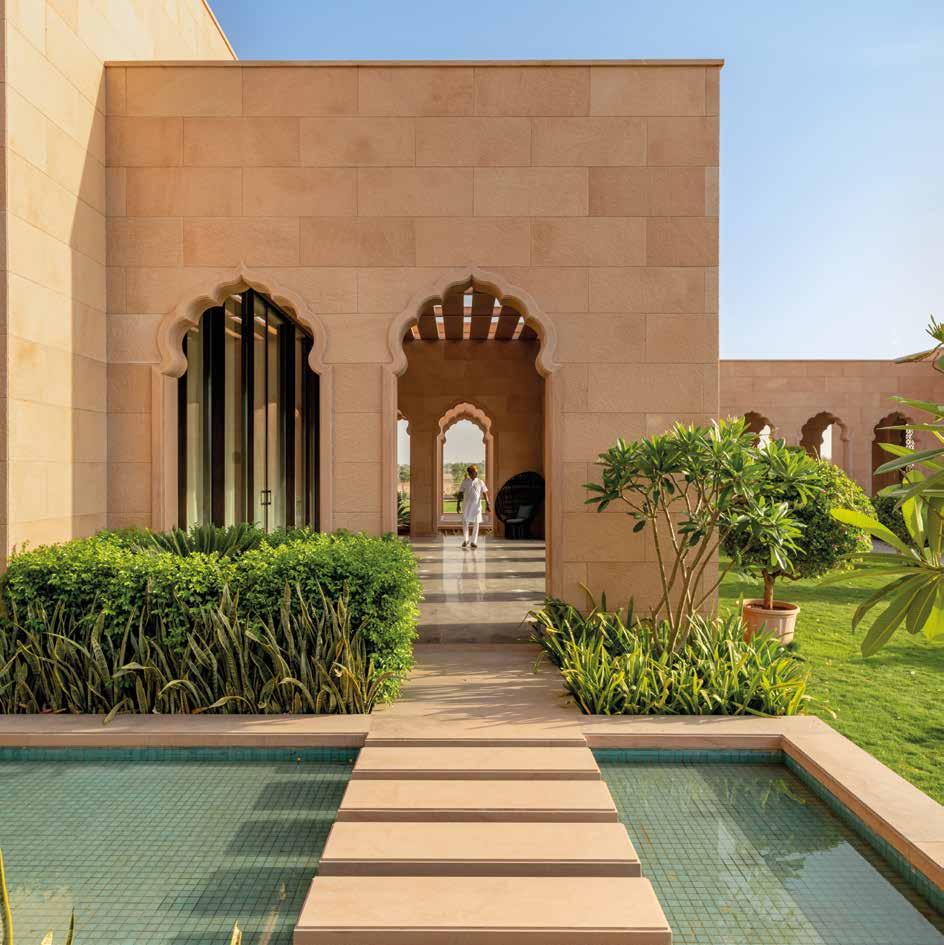 Situata nell’arida regione desertica di Nokha, nel Rajasthan, Narsighar House, progettata da Sanjay Puri Architects, incarna i principi architettonici tradizionali che hanno modellato per secoli il costruito in questa peculiare area dell’India. Come le abitazioni storiche della regione, Narsighar vanta così cortili interni per garantire il raffrescamento passivo, adotta spesse mura in pietra per resistere al calore e le tipiche schermature perforate jali per mitigare l’effetto del sole rovente. Tratti questi, che impreziositi da finestre ad arco, decorazioni litiche, sontuosi pergolati e intricati lavori artigianali di intarsio, non intendono solamente omaggiare le tipiche connotazioni edili del Rajasthan bensì apportare anche vantaggi all’edificio in termini di funzionalità, impatto sull’ambiente, comfort abitativo e performanza strutturale.