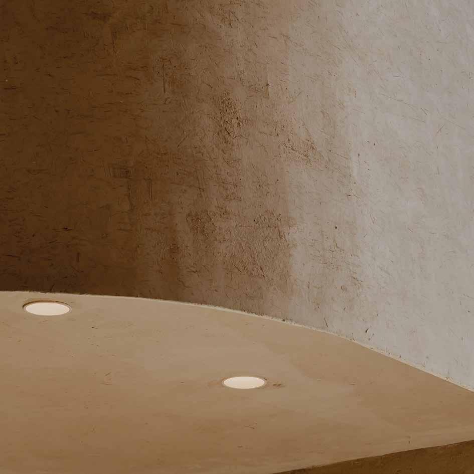 Il colore naturale del materiale, unito all’andamento fluido delle strutture e a un’illuminazione accuratamente studiata per le ore serali, crea un’atmosfera calda e avvolgente, in perfetto equilibrio con il paesaggio rurale.