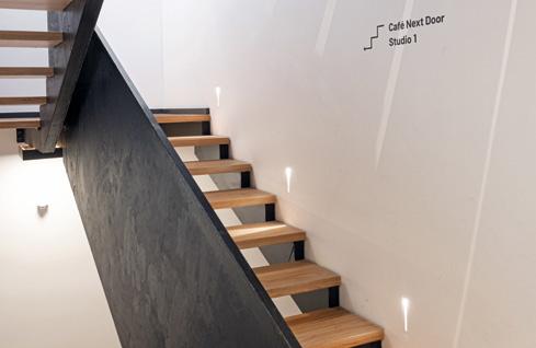 house chandeliers. At the back of the ground floor is the first of the building’s three multi-purpose studios. The stylistic approach here is simple and minimalist, and leans towards industrial design.