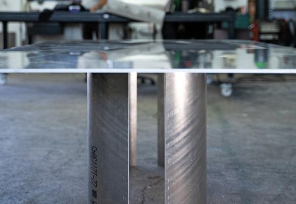 INDIA is characterized by four metal legs, cold-bent to create a unique quarter-circle shape. This profile provides functional stability to the top and, aesthetically, embodies the idea of openness and hospitality that is at the heart of the project.