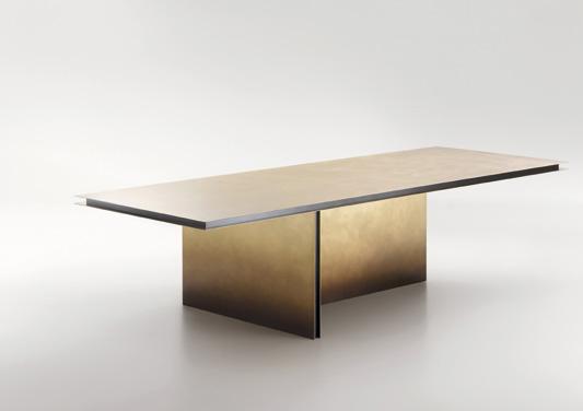 Designed by Draw Studio for De Castelli, the pure, precise lines of the Folio table collection are composed of perpendicular planes of metal sheet.