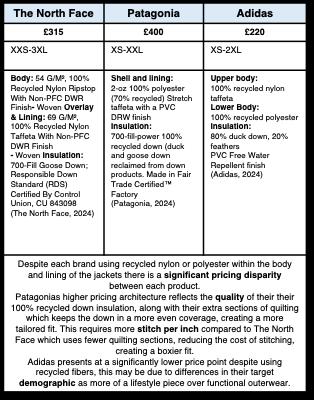 • Failing to maximise ‘youth culture’ of puffer jacket could see competitors capitalise on this market segment.