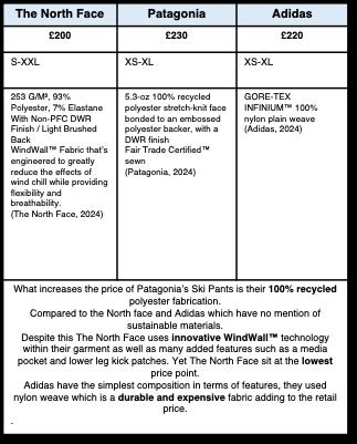 - The North Face products are priced higher than many competitors, this could lead to target market resorting to second hand online platforms or lower priced brands.