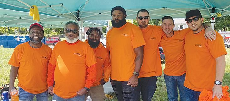 LABORERS LOCAL 42 volunteers who turned out to install Ring doorbell cameras and motion detecting lights in Wellston, Mo., included (from left) Kenny Walker, Vice President Brian Watson, Terrel Ward, Sette Randle, Mike Haukap, Jake Bowen and Dale Watson. – Laborers Local 42 photo