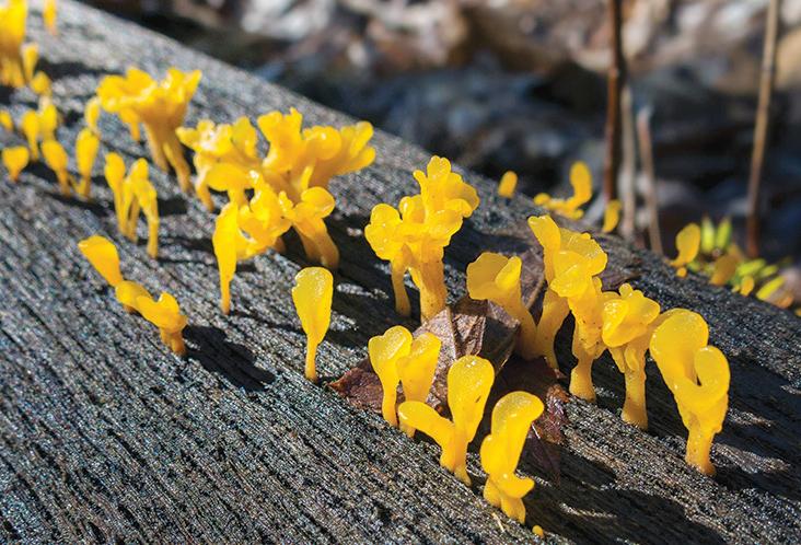 WITCHES’ BUTTER FUNGUS grows on dead wood in the October woods.