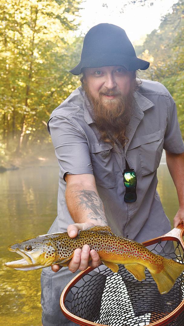 NATHAN “SHAGS” MCLEOD with a brown trout caught from a magical river in the Missouri Ozarks. – Brandon Butler photo