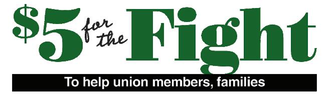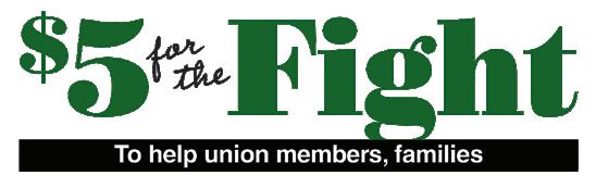 Three ways to give: Mail: Check/money order payable to “$5 for the Fight.” Mail to: $5 for the Fight, c/o St. Louis Labor Council, 3301 Hollenberg Drive, Bridgeton, MO 63044; Please include union affiliation. On line: labortribune.com, click “$5 for the Fight.” Reoccurring credit card donation: labortribune.com, “$5 for the Fight.” Select “Automatic monthly deduction,” amount and number of months donation. NOTE: Credit card billing statement will read “505 Publications.”
