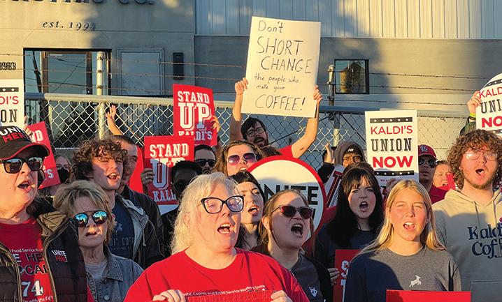 The rally attracted a group of well over 100, including Kaldi’s workers from eight Kaldi’s locations, lowwage workers from across the city, local elected officials, community,