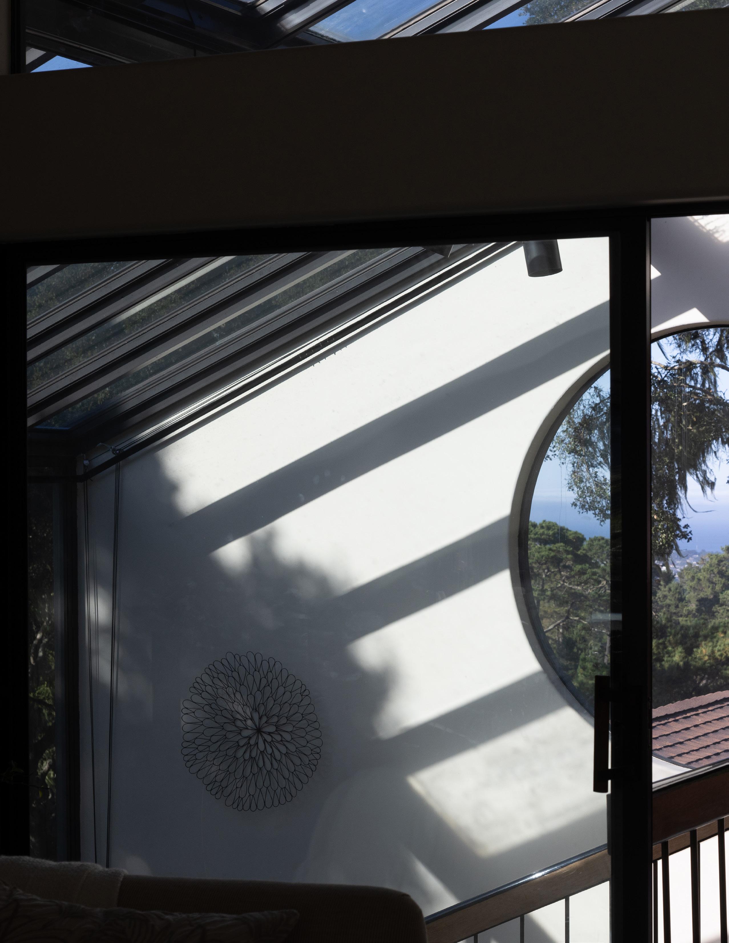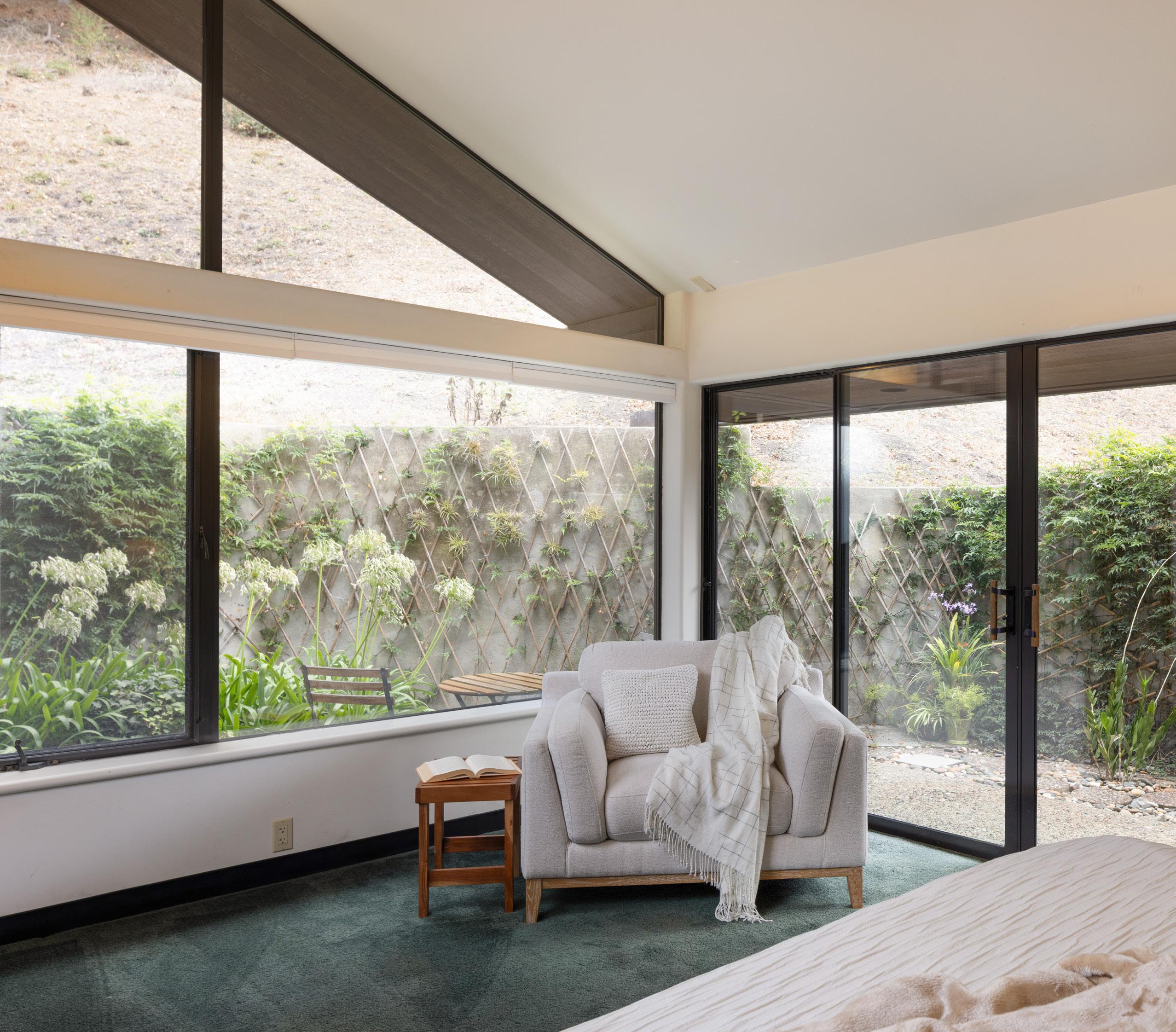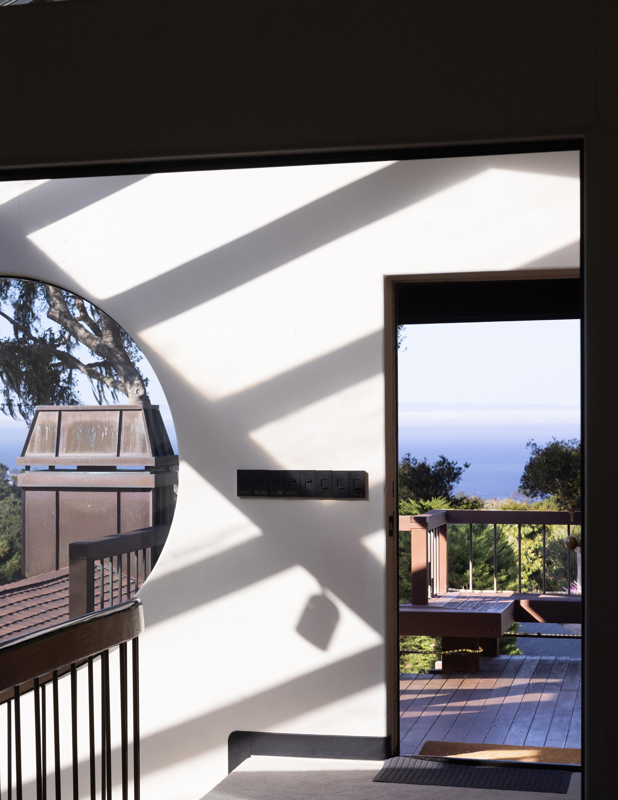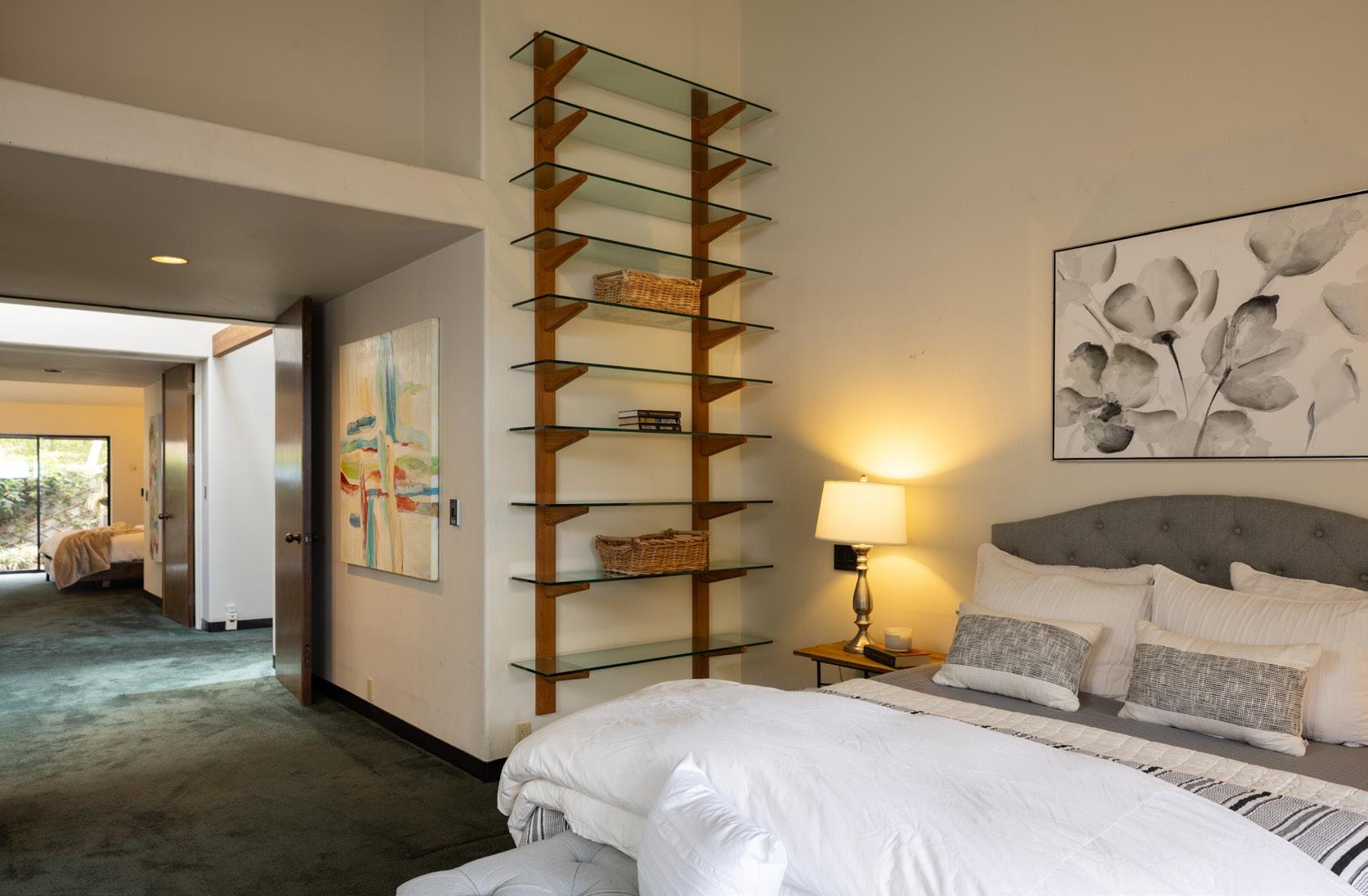 Designed by local acclaimed architect Olof Dahlstrand, this architectural gem blends timeless design with the tranquility of its five-acre Carmel setting. Crafted in redwood and teak, the 5,777± sq. ft. residence frames sweeping views of Monterey Bay and the surrounding forest through walls of glass and expansive decks. Inside, warm textures and fine materials define every space, including five sculptural concrete fireplaces and custom built-ins throughout. Perfect for entertaining, the home features multiple living areas, including a library and family room, and two full kitchens—one with a commercial-grade Vulcan range and dual Traulsen refrigerators. Four ensuite bedrooms each open to private patios, while the primary suite offers its own fireplace and kitchenette. Additional amenities include a sauna, two laundry rooms, an artist studio with water, and a detached four-car garage. Centrally located within a few minutes’ drive into downtown Carmel, Monterey, and all the incredible amenities the Peninsula has to offer, this rare architectural retreat is a place where design, nature, and light exist in perfect harmony.