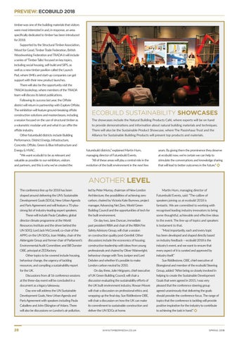 PREVIEW: ECOBUILD 2018 timber was one of the building materials that visitors were most interested in and, in response, an area specifically dedicated to timber has been introduced for 2018. Supported by the Structural Timber Association, Wood for Good, Timber Trade Federation, British Woodworking Federation and TRADA it will include a series of ‘Timber Talks’ focused on key topics, including social housing, self-build and SIPS, as well as a new timber pavilion called the Launch Pad, where SMEs and start-up companies can get support with their new product launches. There will also be the opportunity visit the TRADA bookshop, where members of the TRADA team will discuss its latest publications. Following its success last year, the Offsite district will return in partnership with Explore Offsite. The exhibition will feature ground-breaking offsite construction solutions and masterclasses, including