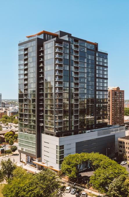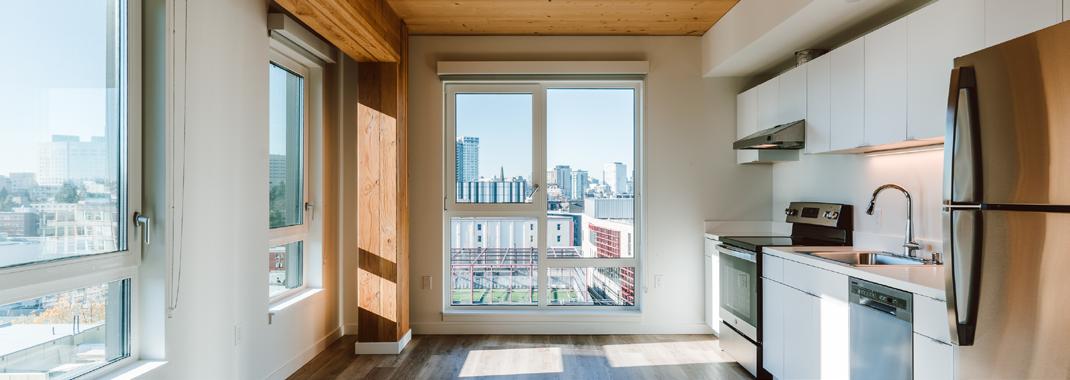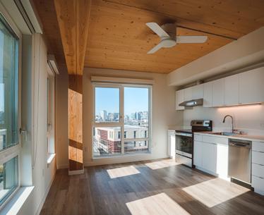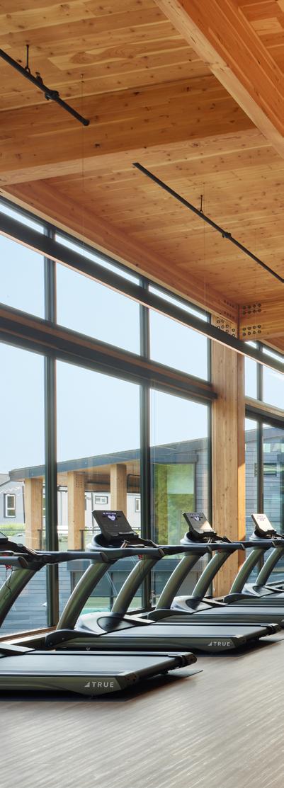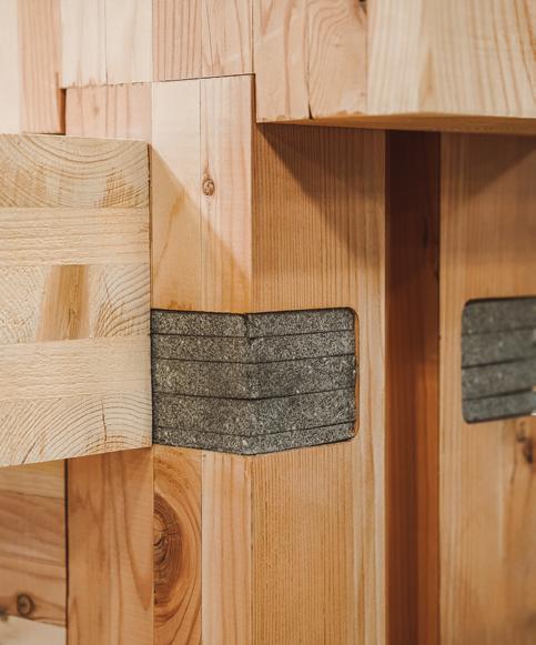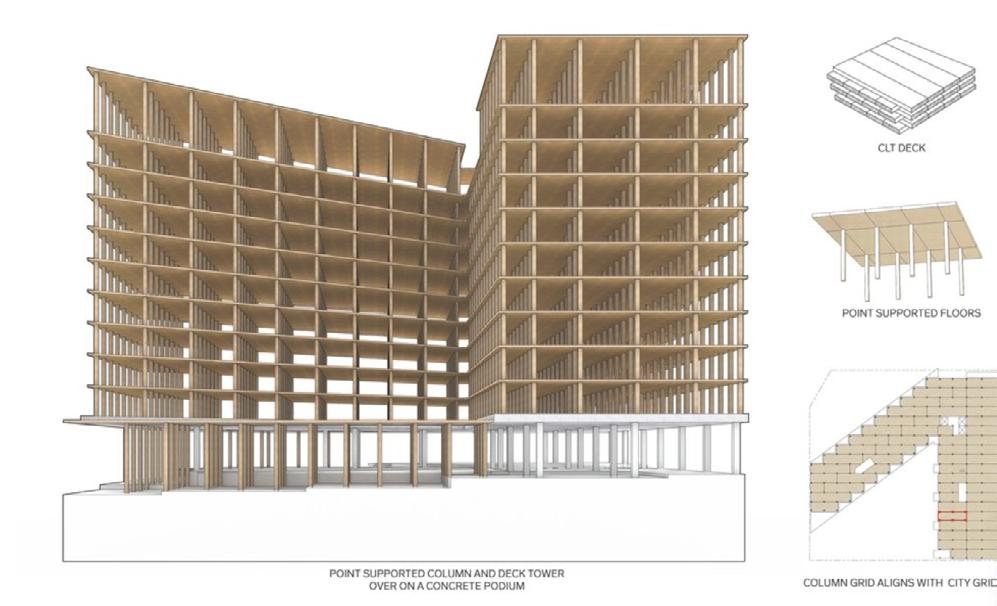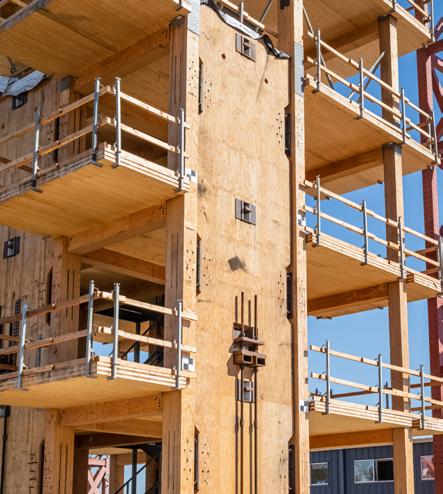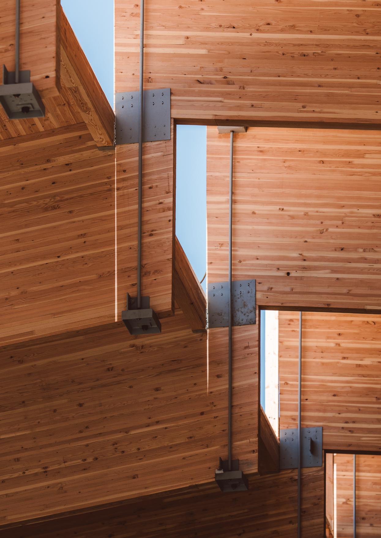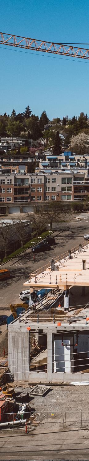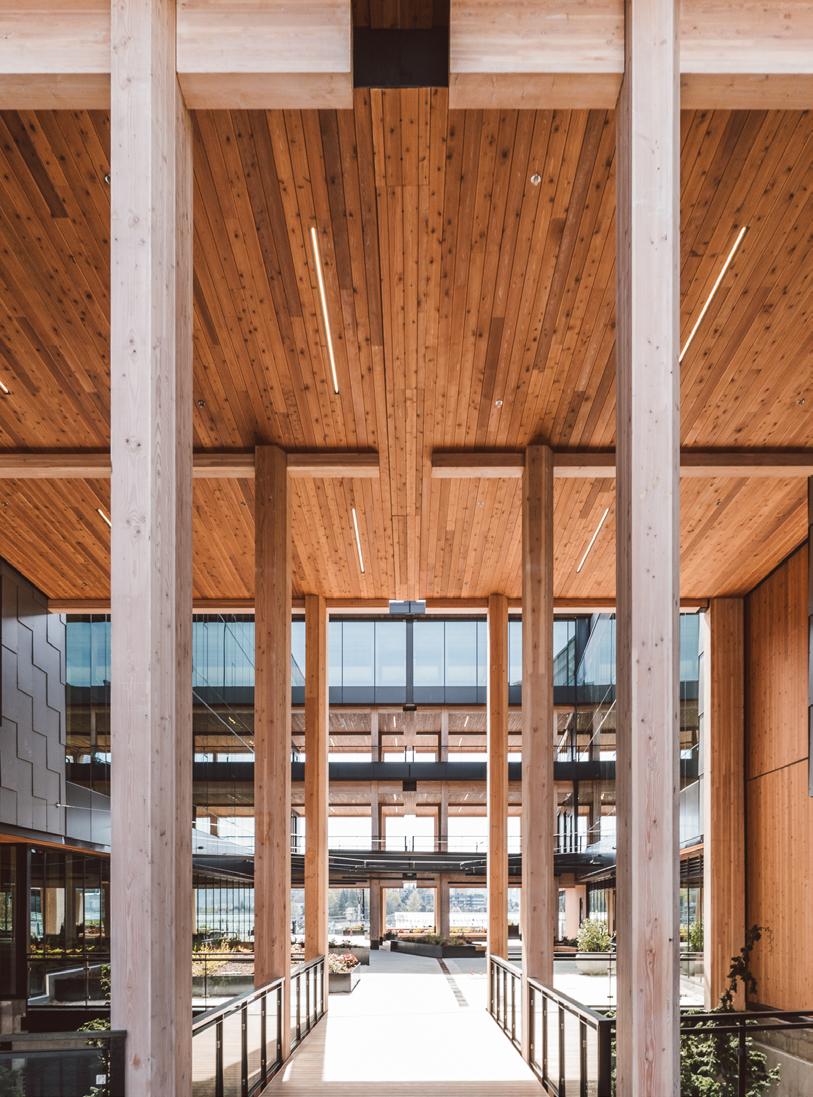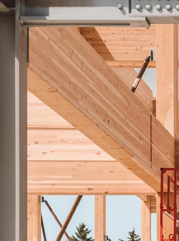 Heartwood is the first building in the country permitted as Type IV-C construction in the United States. At eight stories and 70,000 gross square feet in the Capitol Hill neighborhood, it is the first tall wood building permitted by the City of Seattle. Timberlab, in partnership with DCI Engineers, developed a 2-hour fire-rated woodto-wood connection for the structure.