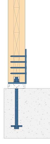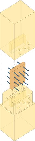 Coordination of structural systems ensures smooth installation on-site. The process involves the reconciliation of system geometries and dimensions, as well as refinement of details at the interfaces between systems to allow for differences in manufacturing and construction tolerances between materials. Critical attention must be given to the connection of glulam columns or CLT walls with the concrete foundation or slab and the interaction between a mass timber gravity system and a steel or concrete lateral system.