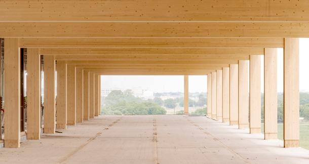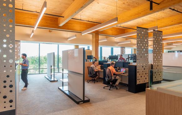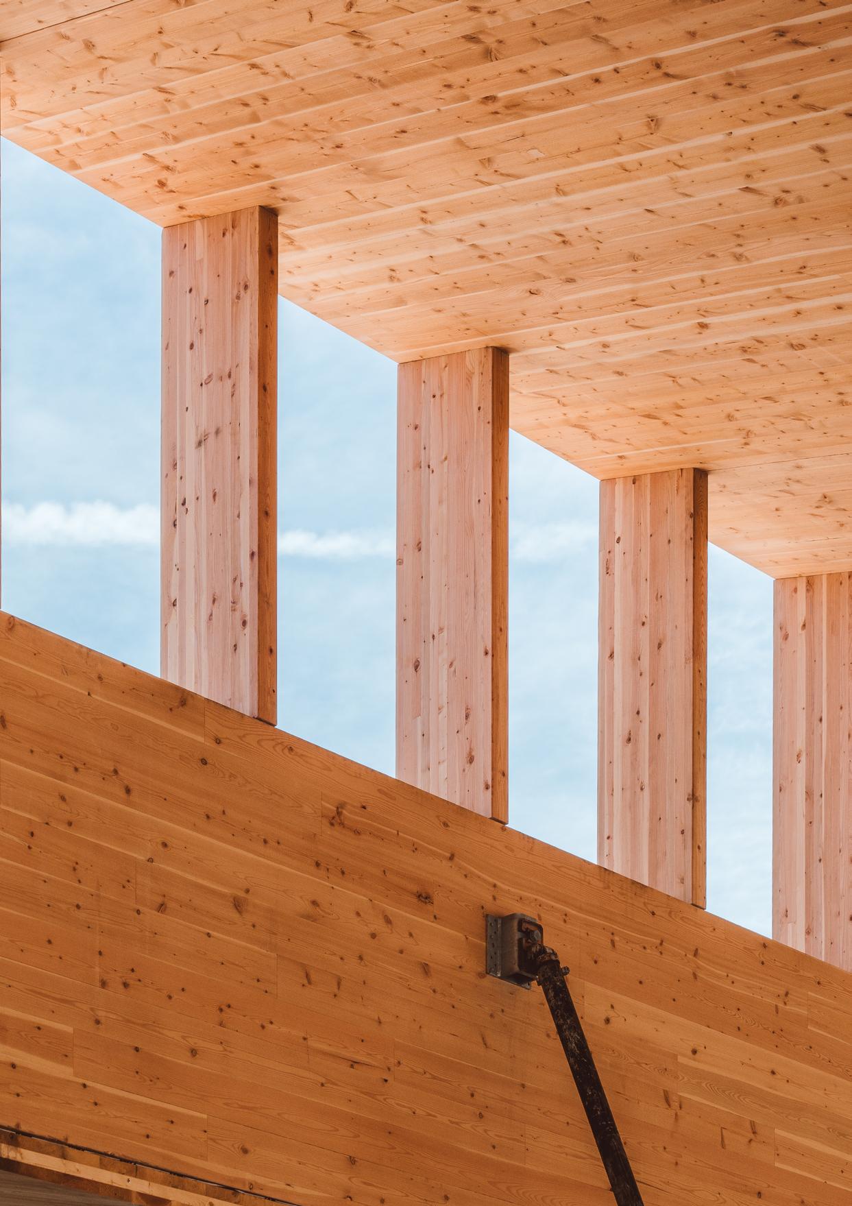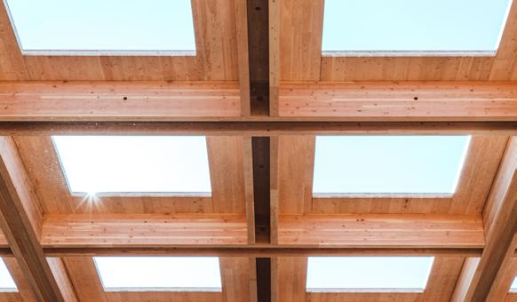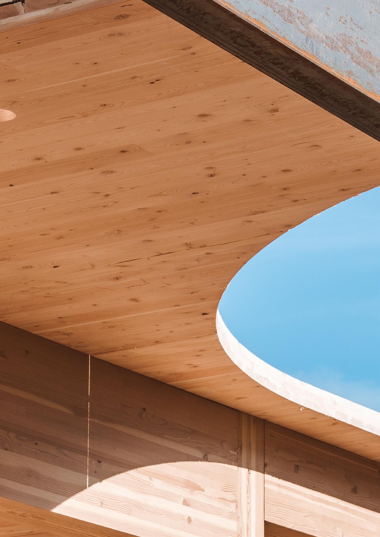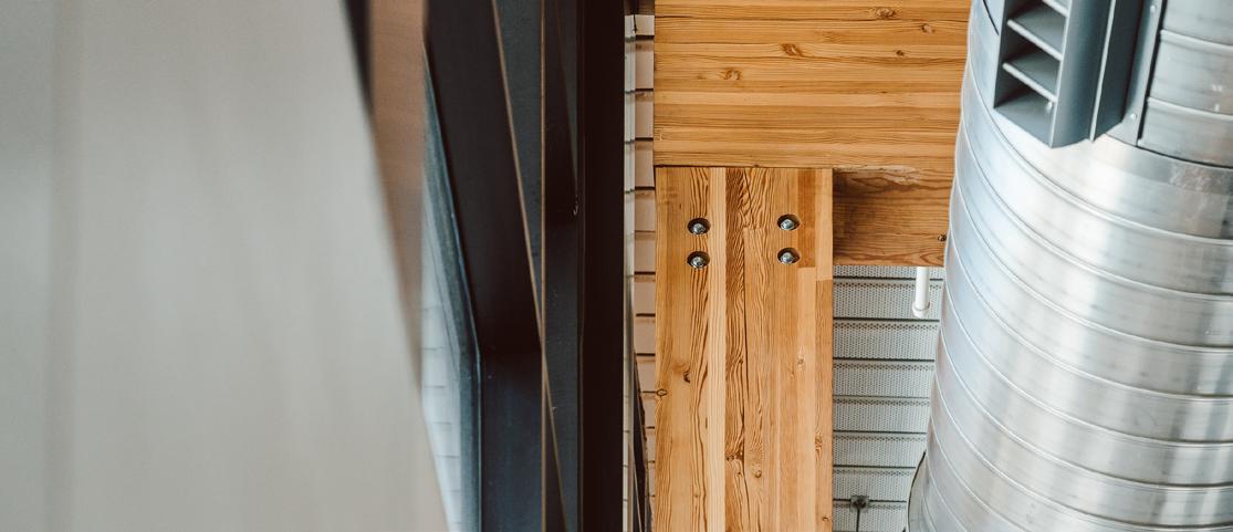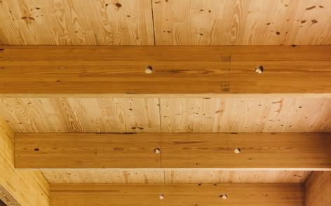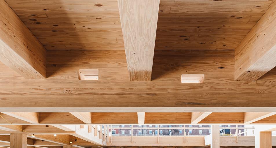 Mass timber construction offers tremendous opportunity to prefabricate building components for swift, safe assembly on site. The precise penetration of beams and panels through which to run building services is one aspect of this componentization, facilitating efficient installation of building services once the structure is in place and resulting in an elegant, uncluttered, exposed timber ceiling.
