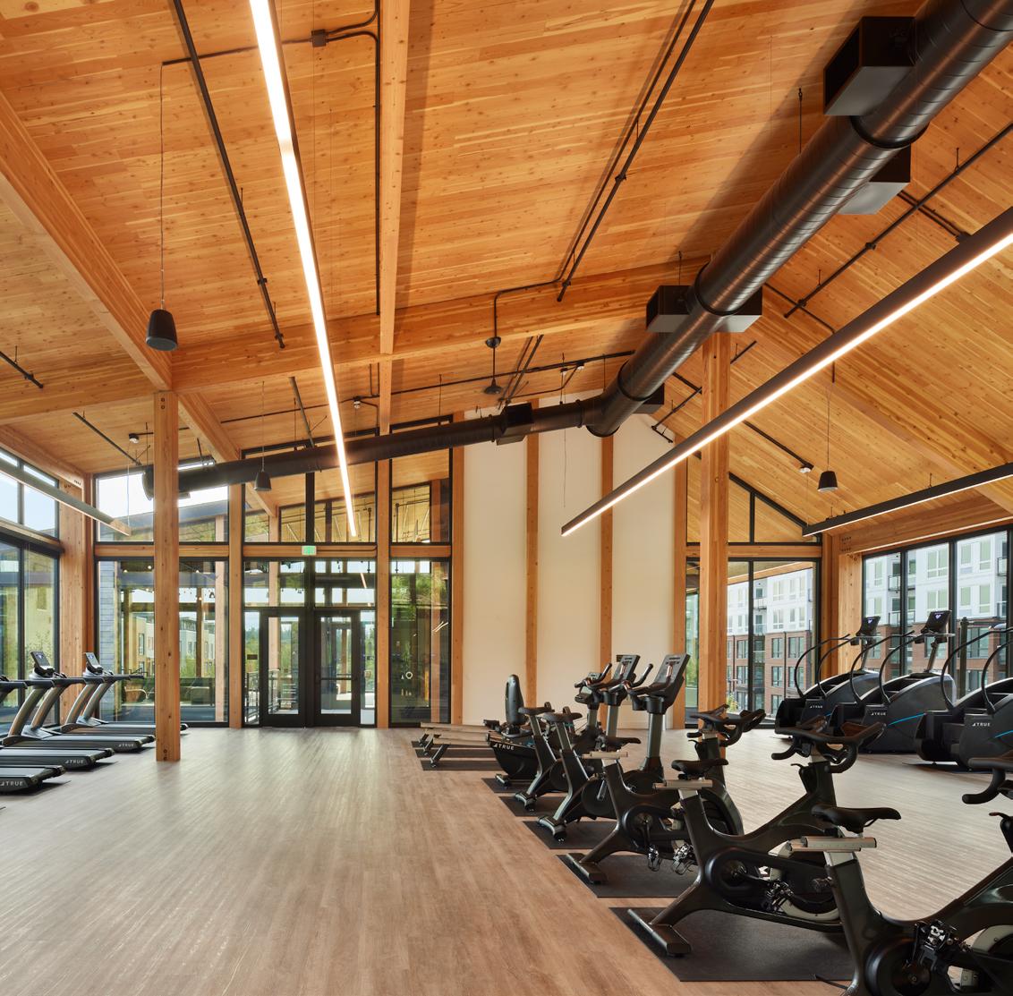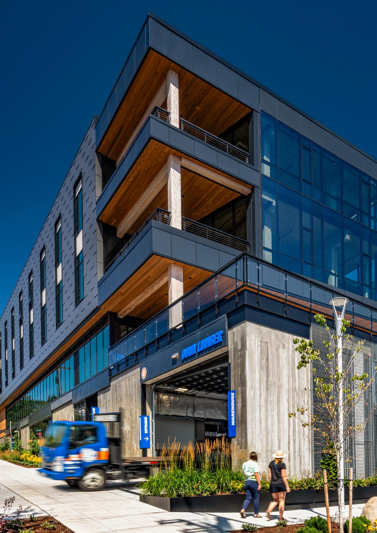 Northlake Commons in Seattle, Washington is a five-story, 175,000-square-foot mixed-use, lab-ready office and commercial building that represents one of the largest mass timber workplace structures in the United States, integrating over 150,000 square feet of exposed CLT and glulam structure over a concrete podium with warehouse, retail, and outdoor public plaza components.