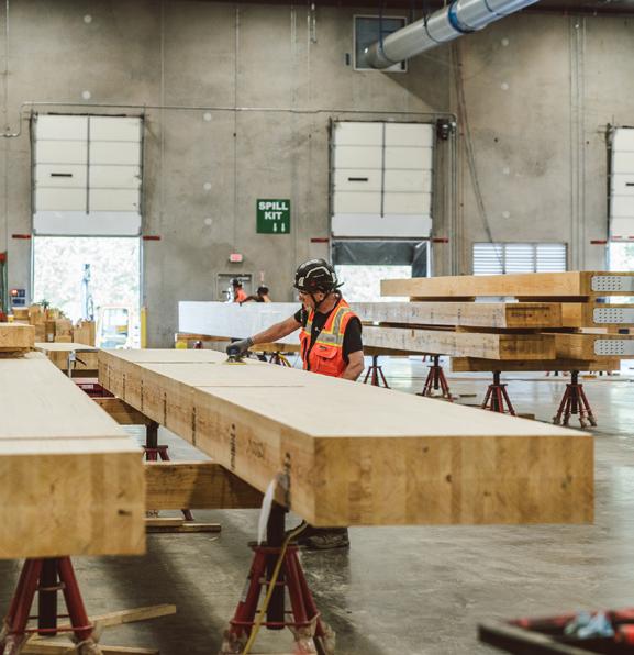 Timberlab's Swisshome, OR, glulam manufacturing operation, formerly American Laminators, carries a rich legacy of craftsmanship and expertise in engineered wood products. Acquired by Timberlab in 2024, the facility is located within Oregon’s premier timber basket, benefiting from access to some of the highestgrade lumber in the country. The proximity to quality raw materials ensures that Timberlab continues to produce exceptional glulam products. By preserving the legacy of this long-standing facility, Timberlab honors the region's deep-rooted timber traditions while advancing modern mass timber innovation.