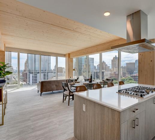 Timberlab’s contributions on Ascent in Milwaukee, Wisconsin supported one of the most technically ambitious mass timber projects built to date: a 25-story, 493,000-square-foot hybrid mass timber-concrete residential tower that, at 284 feet, became the world’s tallest mass timber hybrid structure upon its completion in 2022.