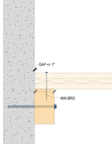 The CLT slab edge must be carefully coordinated at each interface with concrete shear walls, steel braced frames, and other non-timber structural elements. Slab edge coordination should consider tolerance differences between materials, ensure minimum bearing requirements are met, and enable some degree of adjustability in the field.