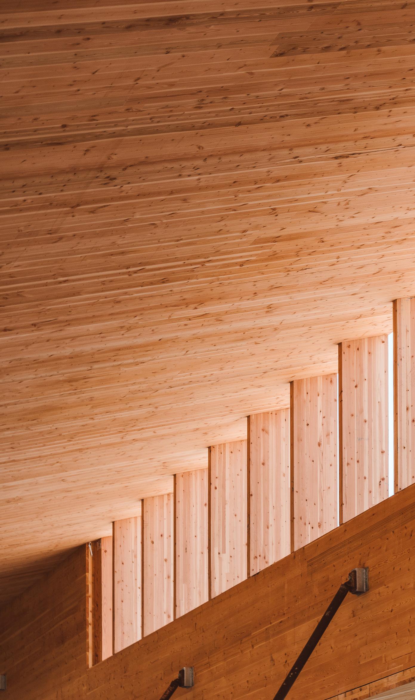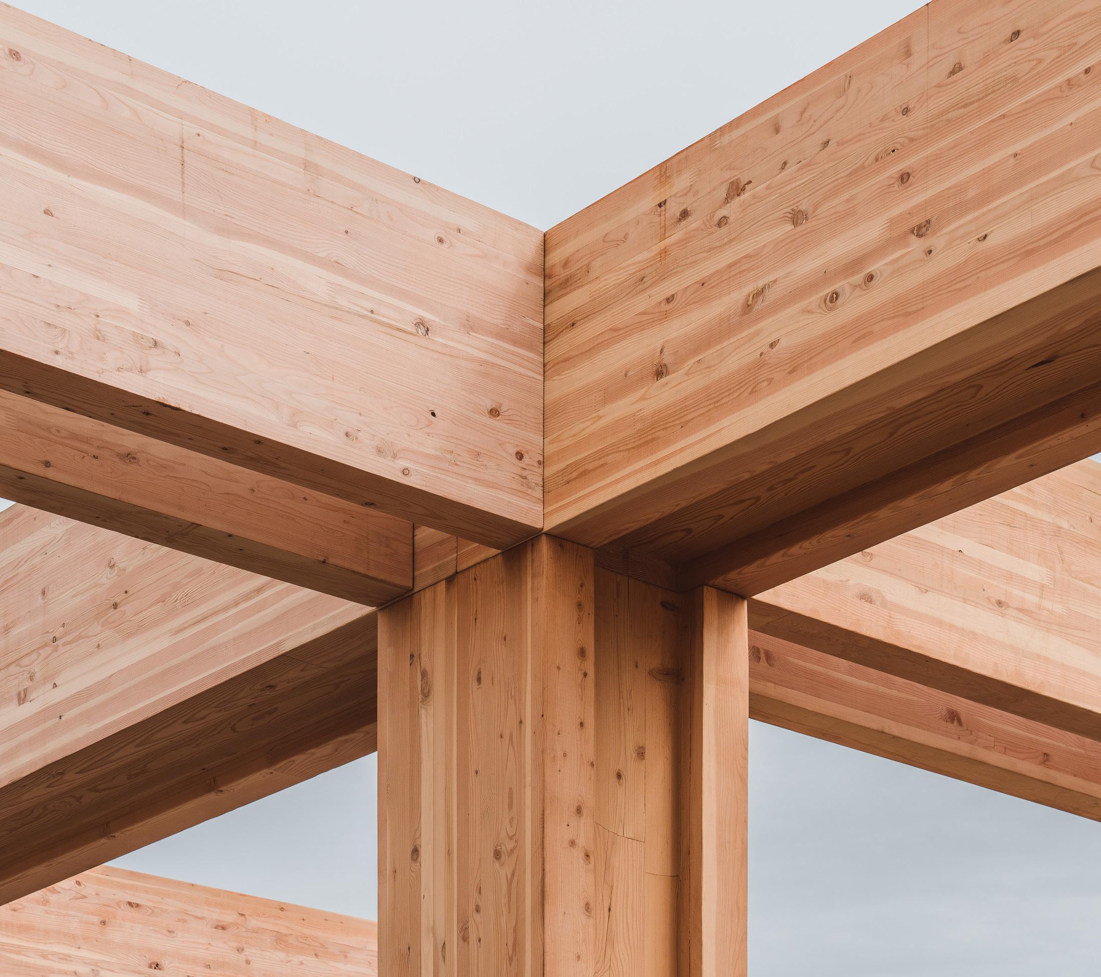 Timber offsets emissions associated with energy-intensive construction and stores carbon in the structure.