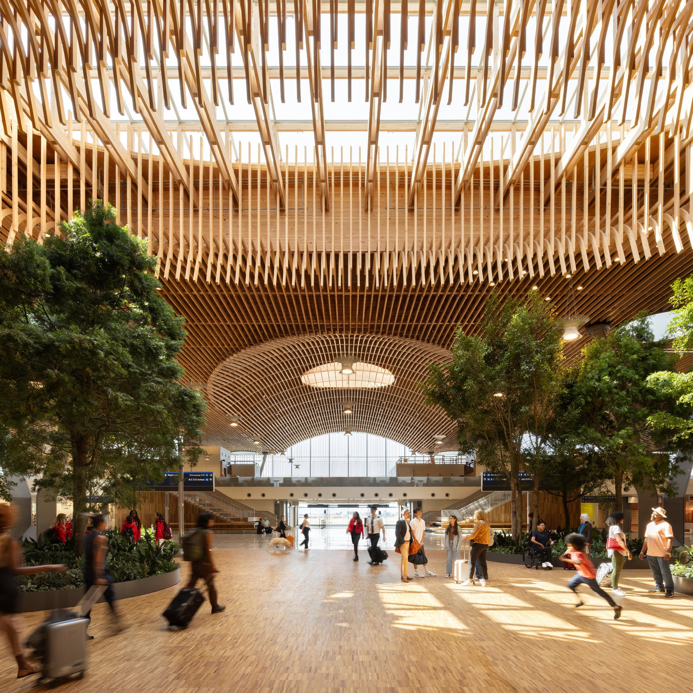 The centerpiece of the PDX Terminal Core Redevelopment is a stunning, 400,000-square-foot timber roof that highlights the region’s innovation in mass timber. Comprised of approximately 3.3 million board feet Douglas Fir, the roof features over 400 80-foot glulam arches and mass plywood panels for the roof diaphragm and skylight curbs.