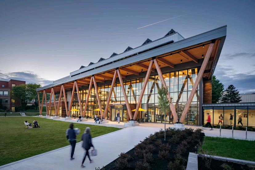Serving as the hub for the university’s Portland Campus, the brand new, three-story Career and Student Success Center provides space for students, faculty, employers, and the community. The 42,000-squarefoot building is a hybrid steel and timber structure, of which 17,000 square feet is mass timber.
