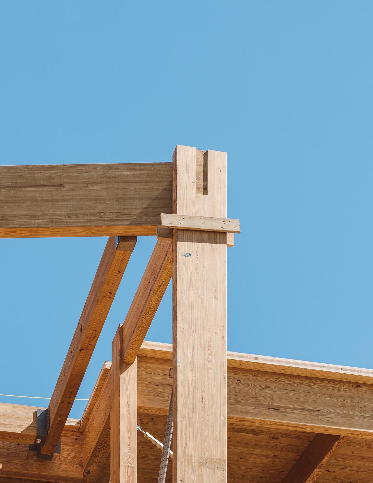 • Effects of connections on the balance of the primary structural system where mass timber interfaces with other systems (for example, concentrated loads imposed or eccentricities that may necessitate reinforcement of the supporting structure)