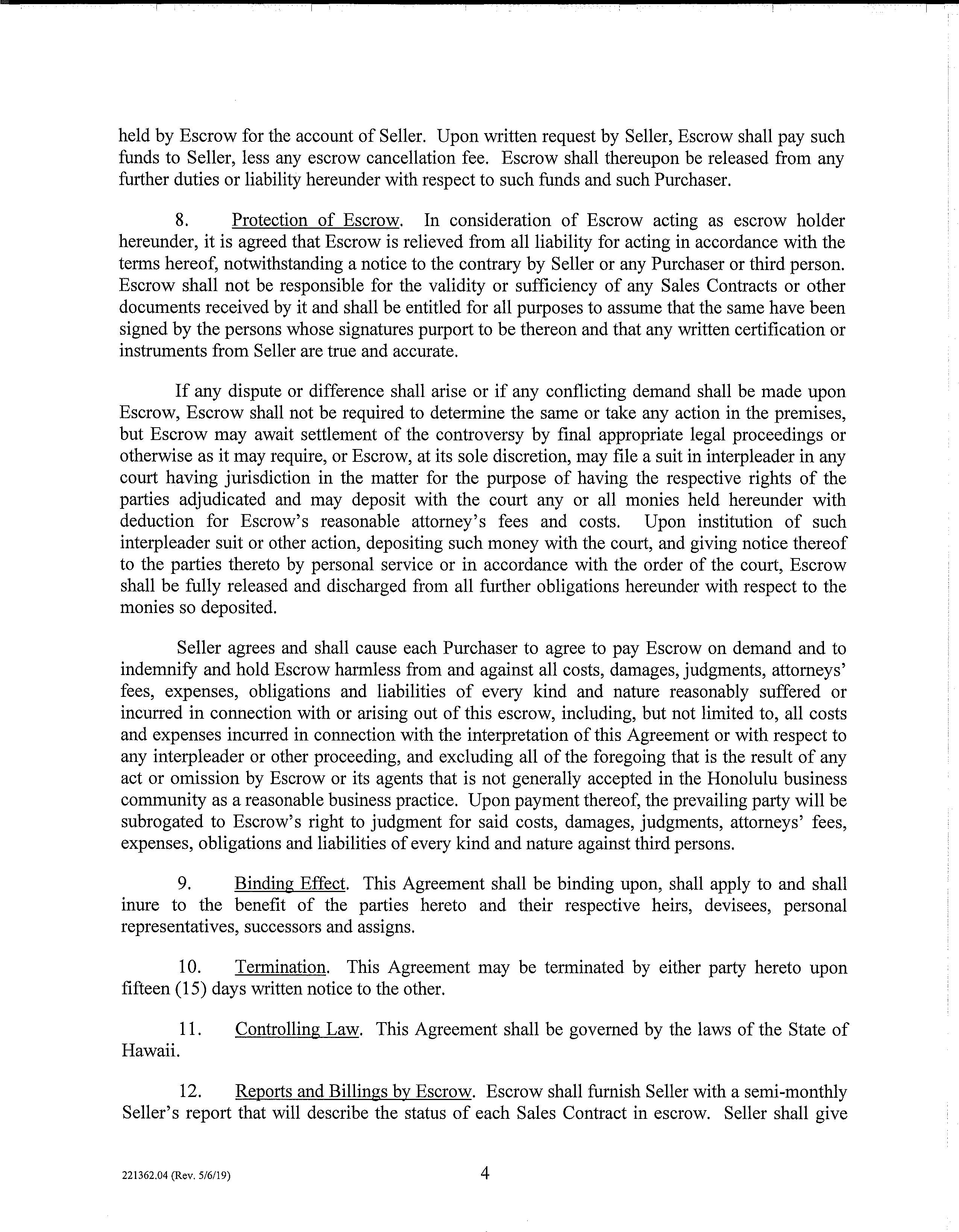 Escrow Agreement and Amendments