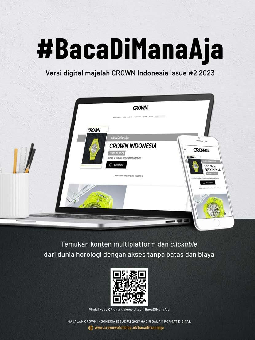 WWW.CROWNWATCHBLOG.ID Nikmati informasi menarik terkini seputar dunia jam tangan di mana saja dan kapan saja dari perangkat favorit Anda. “Pindai kode untuk mulai membaca” Your Go-To Resource for Everything Timepiece facebook.com/crownwatchblogid @crownwatchblog.id A PROUD MEMBER OF TIME INTERNATIONAL GROUP
