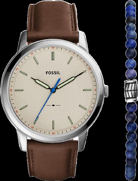 BREAK Brown leather, the classic definition of timeless and versatile. Elevate your style this holiday! FOSSIL Minimalist Brown Eco Leather Watch & Bracelet Set