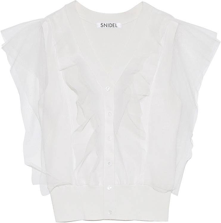 SNIDEL Sustainable Tulle Sleeve Knit Pullover