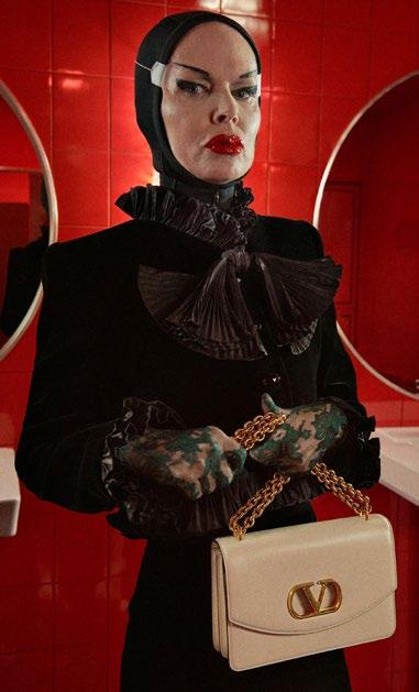 borrowed masculine elements with mixedmetal chains across the vamp. Jewellery embraced a “more is more” philosophy: pearls, glass flowers, and seed beads wrapped around twisted chains, while shells were cleverly woven into jackets and pins adorned garments and straps like keepsakes.