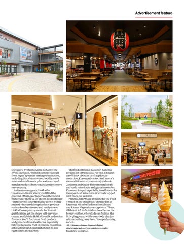 souvenirs. Kyotanba Ajimu no Sato is the Kyoto specialist, where it carries foodstuff from Japan’s premier heritage destination, including black bean sweets, locally made miso and condiments, plus a wide array of matcha products from tea and confectionery to even curry.