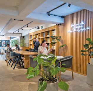Mientras vier te el chor ro de agua de for ma circular para preparar los tres filtrados de esta experiencia (sus líneas Paz, Libre y Rock), Natalia es muy enfática en decir que para adentrar nos al café de especialidad lo primero es respetar y dar mérito a los caficultores detrás de cada bolsa, por eso aquí el 3% de las ventas se destina a llevar la agricultura regenerativa a familias caficultoras.
