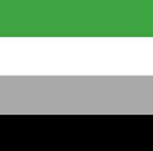 La bandera está formada por diversas franjas y tonalidades verdes que representan formas no románticas de experimentar el amor y la atracción. El gris y el negro representan a todas las sexualidades bajo el espectro arromántico.