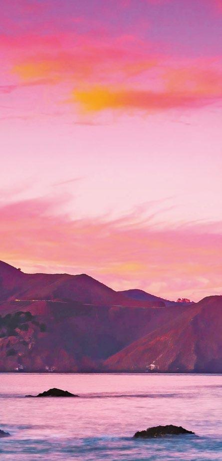CALIFORNIA ES CONOCIDO por sus vibrantes ciudades; desde las playas y rincones culturales de Los Ángeles hasta el icónico puente Golden Gate, en San Francisco. Pero muy cerca de estas urbes que resultan un gran punto de partida, aguarda el impresionante paisaje desértico de Joshua Tree; las costas de la Bahía de Monterey donde descansan focas y nutrias, y la tranquilidad de Palm Springs, sede de eventos de fama mundial como el afamado Festival de Coachella.
