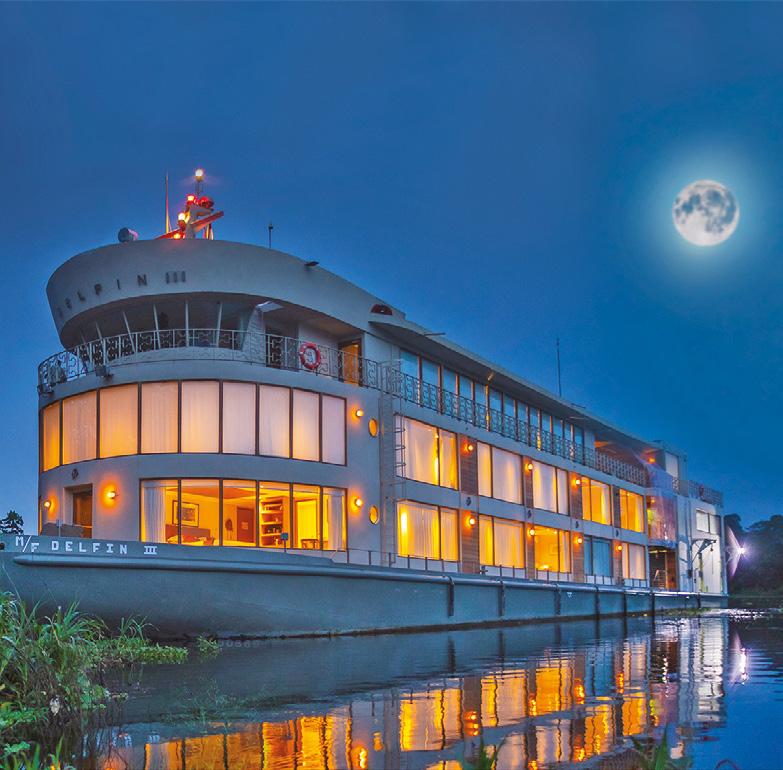 La mayoría de los cruceros de Delfin parten muy cerca de Iquitos y navegan entre tres y cuatro días en travesías que incluyen