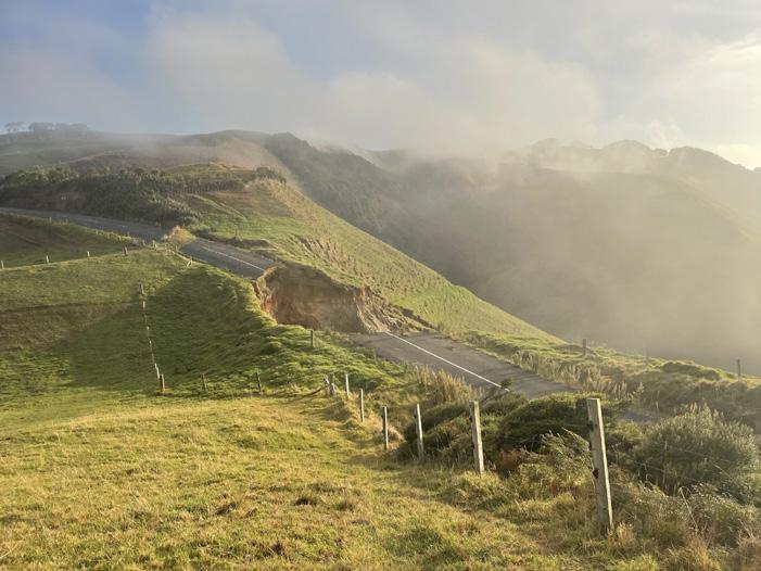 An 80-metre slip appeared on Manukau Heads Road in January 2023