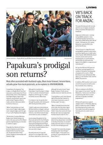 Papakura’s prodigal son returns? Most often associated with Auckland rugby, Blues loose forward, Jerome Kaino, actually grew from local grassroots, as he explains to JON RAWLINSON. Competing in the Japanese Top League or a Rugby World Cup final may seem a world away from Prince Edward Park, home of the Papakura Sea Eagles Rugby League Club. However, Jerome Kaino says it was while living in Papakura that he made a decision that would affect his life from there on.