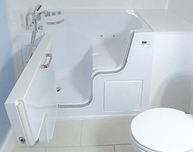 Walk-in tubs are exactly what the name implies, tubs that have larg e doors that open, and you simply walk in and sit down on a 17-inch-high seat